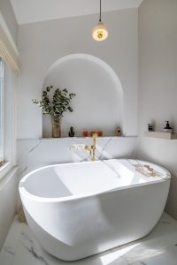Designing a bathroom is all about striking a balance between style and functionality to create a space that is beautiful and feels both calm and peaceful.