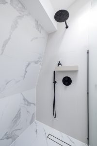 When choosing surfaces, it is important to consider ease of maintenance. Non-porous tiles, sealed stone and high-quality grout can all keep the space looking really good, with minimal effort.