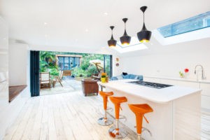 Once you have made the decision to build a side return extension, it’s important to think about the layout of your kitchen. Modern kitchens are now the heart of the home, and are no longer just used for food preparation, but also for eating, entertaining and relaxing. When considering your design, bear in mind your needs as well as the dimensions you have available.