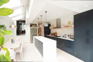 Once you have made the decision to build a side return extension, it’s important to think about the layout of your kitchen. Modern kitchens are now the heart of the home, and are no longer just used for food preparation, but also for eating, entertaining and relaxing. When considering your design, bear in mind your needs as well as the dimensions you have available.